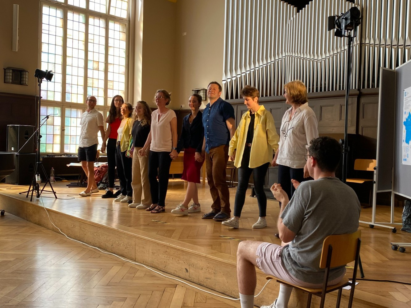Dabei beeindruckte das interkulturelle Theaterteam, bestehend aus 14 passionierten Mitgliedern, mit mehreren Kurzgeschichten. Als Übergang zwischen den einzelnen Szenen bot die Gruppe abwechslungsreiche Anekdoten ihrer eigenen Erfahrungen. Die Sprachbarriere war dabei kein Problem, da die Texte größtenteils auf Deutsch vorgetragen oder übersetzt wurden.