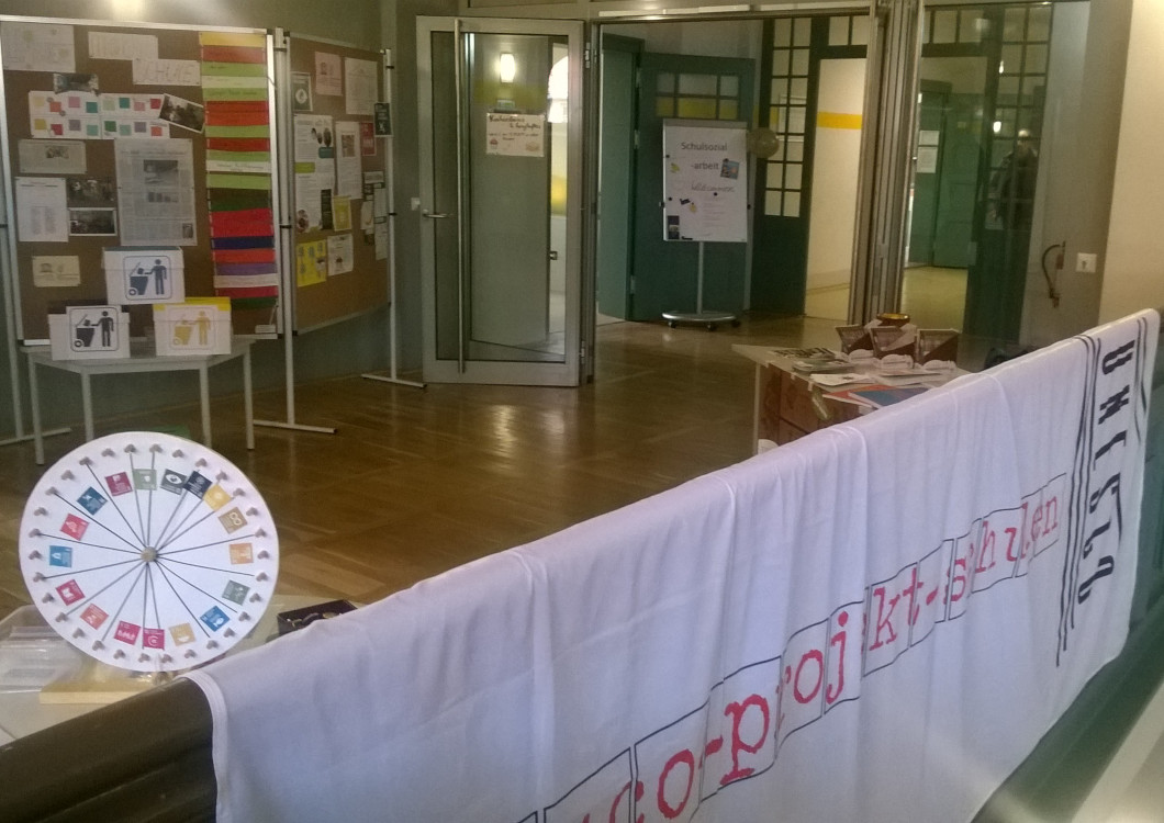Die UNESCO-Arbeitsgemeinschaft präsentierte am Tag der offenen Tür, 28.09.2019, einige selbstgebastelte Spiele zu den Nachhaltigkeitszielen - AGENDA 2030 und zum Thema Mülltrennung. Die Unterstützung der Initiative Plant-for-the-Planet durch den Verkauf der Guten Schokolade kam ebenfalls super an.