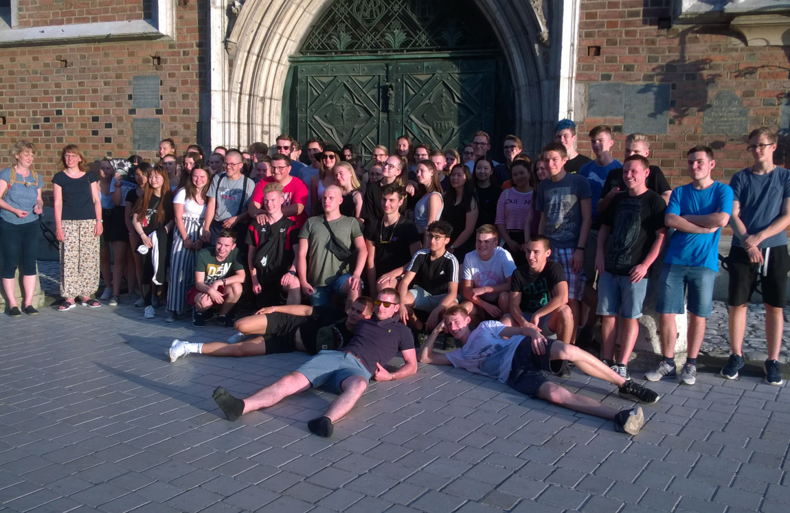 Voller Vorfreude standen wir am Sonntag, dem 30.06.2019, an der Schule bereit und warteten auf den Reisebus, welcher uns nach Krakau bringen sollte. Einige Schüler hatten überschaubar viel Gepäck mitgenommen, andere dagegen machten mit ihren vollgepackten Taschen eher den Eindruck, als würden sie umziehen. Nach der Ankunft des Busses wurden alle Sachen darin verstaut und wir konnten endlich starten. Pünktlich um acht Uhr fuhren wir also los.